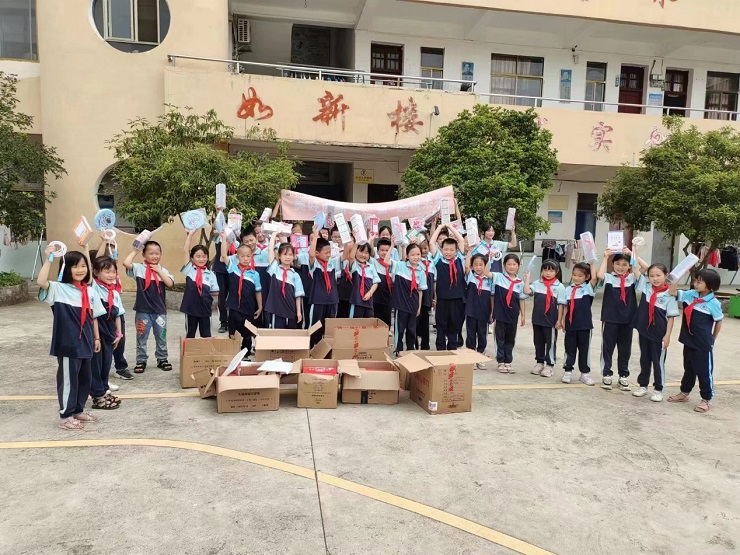 (如新小学的受助儿童收到了如新中国捐赠的物资)