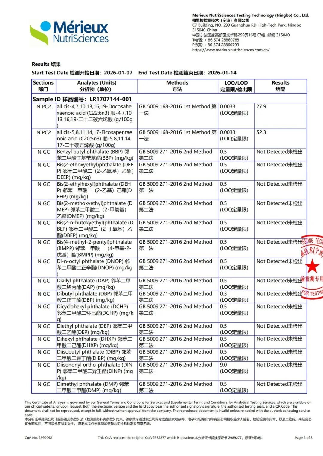 安全性方面,产品表现同样亮眼。检测团队对鱼油本体及胶皮进行全面筛查,18项塑化剂均未检出;重金属铅、镉、砷、汞及七项多氯联苯类物质亦实现“零检出”。值得关注的是,多氯联苯检测项目并未纳入老爸测评范围,该指标可直观反映水体污染程度,进而印证鱼种生长的生态环境优劣,为消费者追溯产品源头品质提供了重要参考,更凸显自然阳光在原料管控上的严苛标准。
