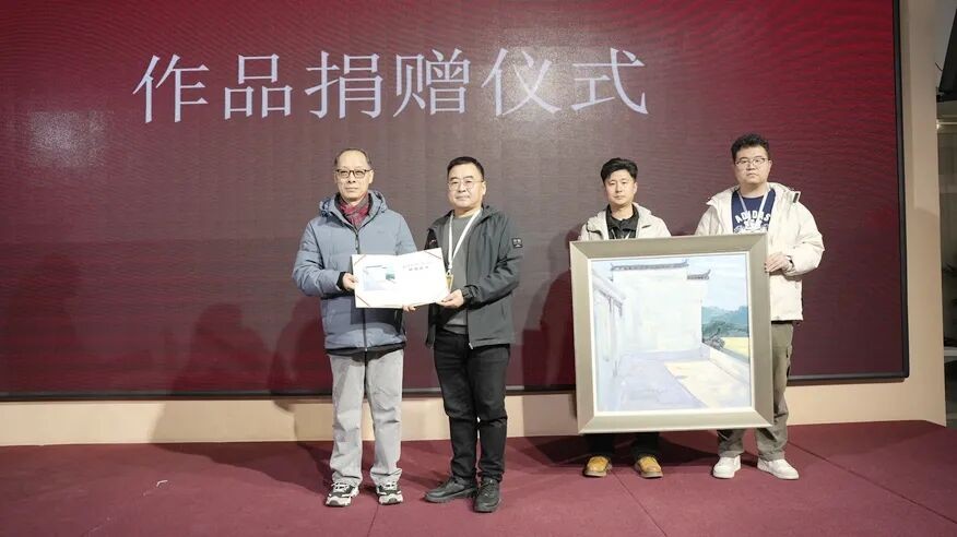 泰安市美术馆(泰山画院)副馆长(副院长)丁毅颁发捐赠证书